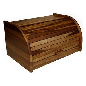 Cache loaves of bread to keep your kitchen organized and clutter-free with this beautiful bread box made of rich acacia hardwood. The ergonomic roll top cover lifts easily for quick access to your favorite breads.